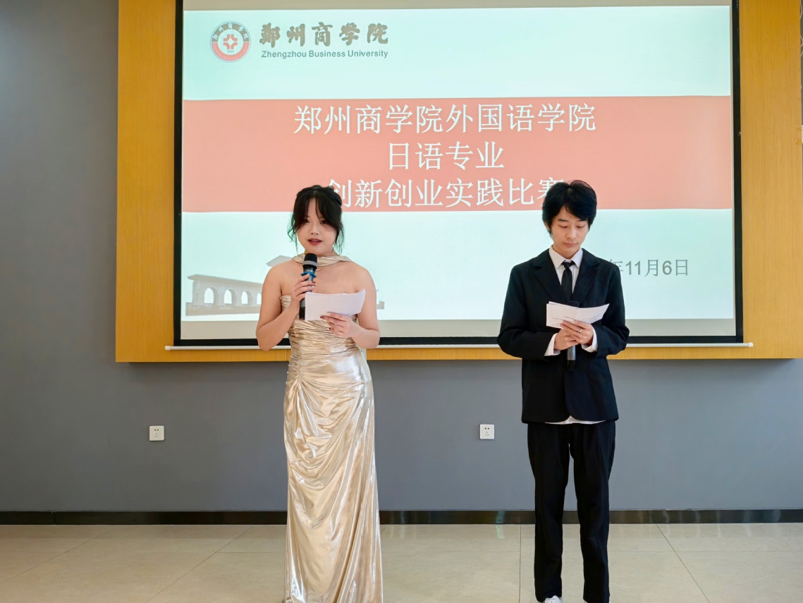 为深化日语专业“产教融合、实践育人”的教学理念,检验学生专业应用能力与创新创业素养,2025年11月6日,日语专业实习成果汇报暨日语创新创业实践比赛在图书馆五楼多功能厅圆满落幕。本次活动由日语专业主办,日语专业负责人刘晓昱、任课教师马园园、张诗笛、张洋、刘丽敏担任评委,日语专业23级全体学生参与了本次活动。