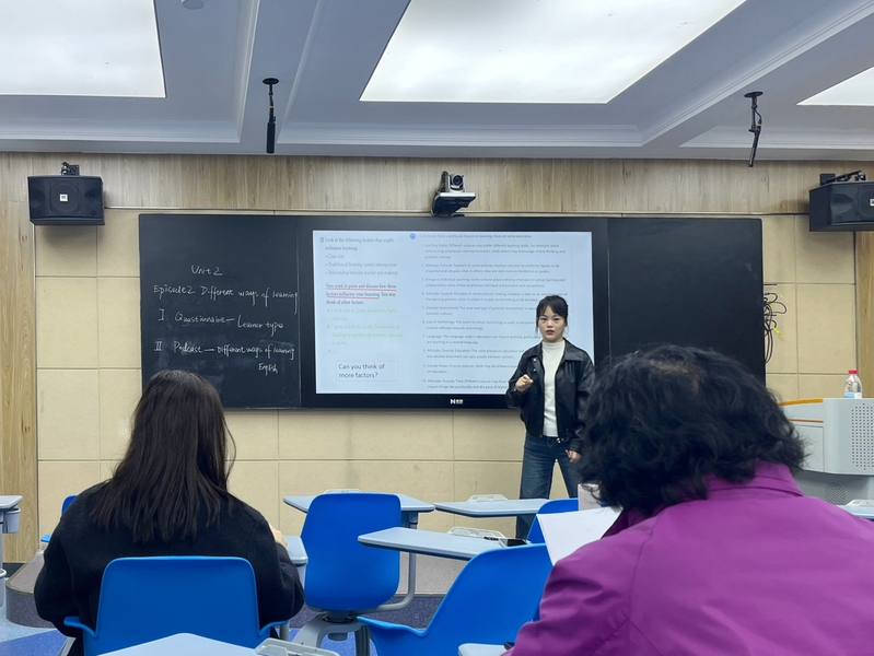 活动期间,耿卫玲、赵保成、杜凤秋、丁玲等教师先后开展45分钟教学展示。教师们紧扣“学生中心、成果导向”核心原则,灵活运用多媒体教学资源、情景模拟、小组合作探究等教学方法,在教学过程中结合思政有机融入跨文化交际意识与批判性思维,课堂互动氛围浓厚,充分展现了以学生语言能力提升为目标的教学设计与实施水平。