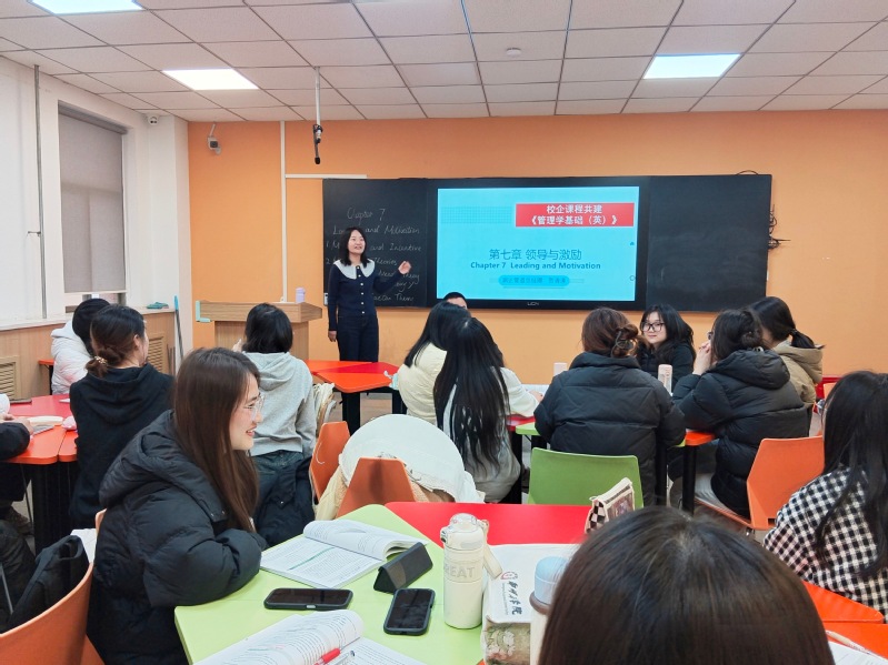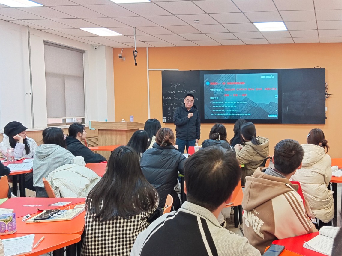 本次课程共建内容为《管理学基础(英)》第七章“领导与激励”。贺清涛总经理结合自身十年创业与管理实践,围绕领导与领导力、需求层次理论、公平理论、期望理论等知识,为同学们带来了一场深刻而生动的管理课。贺总首先分析了管理者与领导者的区别,之后系统介绍了润达管道的激励机制,结合具体案例激励措施深入浅出地解析了如何在实际管理中激活团队潜能。此外,贺总还分享了作为管理者的最大心得“不是把人管住,而是把人点亮”,并推荐彼得·德鲁克的《管理的实践》与《卓有成效的管理者》作为延伸阅读,鼓励同学们不断学习、勇于探索、构建系统的管理思维。