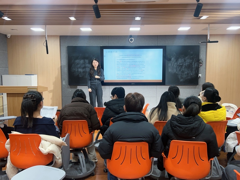 为系统提升大学英语写作教学质量,更有针对性地指导学生进行期末考试写作模块的复习备考,大学英语第二教研室于12月23日在W108召开了以“Writing”为主题的专项教学分享。会议由张文娟老师主持,郑丹阳老师主讲,大学英语第二教研室全体老师参加。