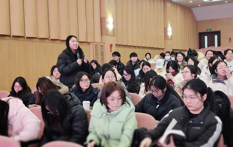 示范课结束后,现场进入提问交流环节,同学们踊跃举手、积极互动,将心中的困惑与思考逐一提出。逯校长和狄老师耐心倾听每一个问题,结合自身多年教学管理经验与一线教学案例,逐一细致解答。她们详实的解答、鲜活的案例分析让在场学生豁然开朗,频频点头回应,现场交流氛围热烈而浓厚。