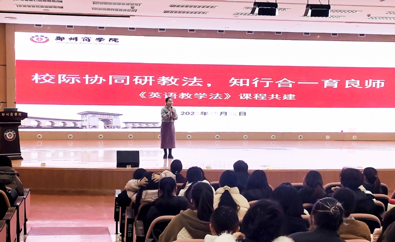 12月25日,我院与巩义市伏羲路小学联合开展的《英语教学法》课程共建交流活动在图书馆一楼报告厅启幕。学院特邀伏羲路小学校长逯继英和英语教师狄静毅进行教学专题分享。我院英语教研室主任李晓丹、《英语教学法》课程任课教师武莹莹、刘雪,以及2023级英语专业全体学生齐聚一堂,沉浸聆听逯继英校长的专题分享,并近距离观摩狄静毅老师的优质小学英语示范课,于理论、互动与实践的深度交融中,解锁小学英语教学的核心密码。