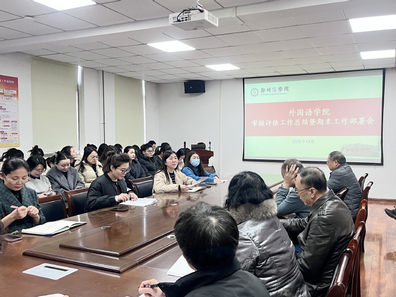 12月25日,我院在外语楼W209学院会议室召开了本科教育教学审核评估工作总结会议。会议由副院长曹晓晨主持,各教研室主任、教学秘书及全体教师参加了此次会议。