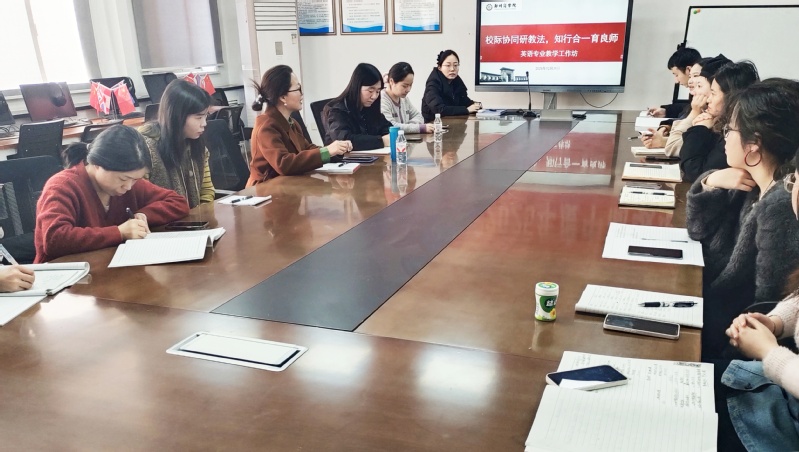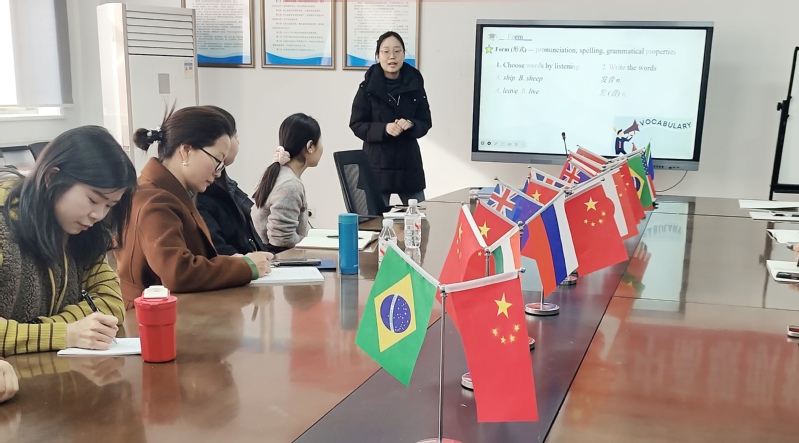 12月25日上午,我院英语专业在外语楼107顺利开展《英语教学法》课程建设教研活动。此次活动旨在深化校际教育教学合作,推动英语教学理论与实践深度融合,提升人才培养质量。外国语学院副院长曹晓晨出席活动并致辞,巩义市伏羲路小学逯继英校长应邀参会,英语教研室主任李晓丹及无课教师参与,共同探讨英语教育质量提升路径。