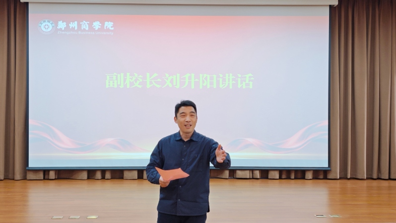 随后,副校长刘升阳发表致辞。他首先向受到表彰的先进集体和个人表示热烈祝贺,并对外国语学院过去一年在教育教学、人才培养等方面取得的显著成效给予充分肯定。刘校长在讲话中强调,教育事业是一项团队工程,外国语学院的发展离不开每一位教师的坚守与协作,学院积极向上、团结奋进的良好氛围值得肯定与传承。同时,刘校长对教师代表发言中脱稿表达、真情流露表示赞赏,认为这种真诚与温度既体现了教师对学生的深切关爱,也展现了学院团队之间的真挚情感。面向未来,刘校长结合AI时代发展趋势,指出外语类专业应进一步增强前瞻意识与战略思维,主动研判专业发展方向和学生就业形势,准确识变、科学应变、主动求变。鼓励学院在学校整体部署下,凝聚各方合力,充分整合资源,持续提升人才培养质量,在学校高质量发展中彰显外语担当、贡献外语方案。