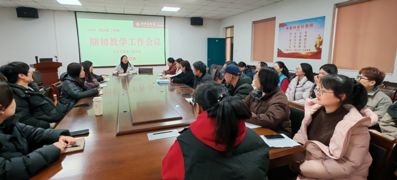为明确新学期工作方向,部署各项教学任务,我院大学英语第二教研室于3月5日下午在W209教室召开了2025-2026学年第二学期期初教学工作会议。会议由教研室主任王霞老师主持,全体教研室教师参加了此次会议。