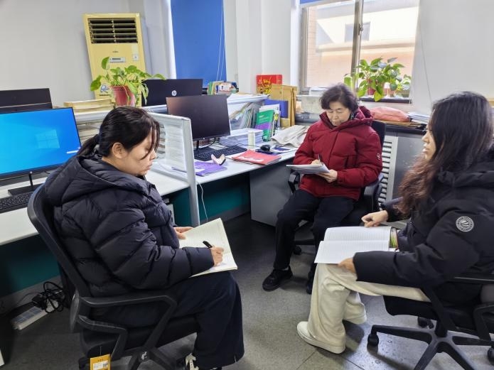 研讨环节中,全体教师围绕教学内容、方法与评价优化展开深入交流,共同确定了分层教学方案,明确了不同层次学生的目标与教学重点。此外,张老师还就新学期教学进度、备课、作业与考核安排做出具体部署,要求加强集体备课,用好智慧教学工具,注重课程思政与跨文化能力培养。