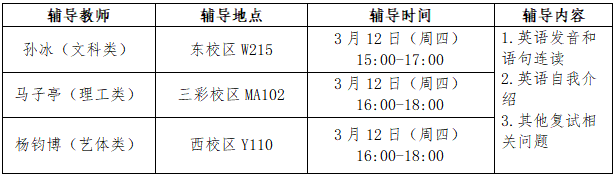 2.预约完成后,请携带英语自我介绍(纸质版)、纸、笔和其他需要辅导的相关纸质材料按时前往表中指定辅导地点,外国语学院专任考研英语教师将为你提供面对面考研复试英语面试辅导。