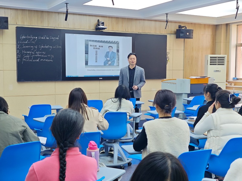 本次教研活动以教学展示为核心,乔修春老师以《新未来大学英语综合教程》第二册第一单元Text A“cyberbullying(网络霸凌)”为主题,呈现了一堂兼具知识性与思辨性的精彩教学展示课。授课过程中,乔老师紧紧围绕文本核心议题,结合当下青少年常用的网络社交场景,精心设计情境导入、文本精读、案例研讨、思辨表达等层层递进的教学环节,将英语语言知识的传授与正确价值观的引导有机融合,既夯实了学生的语言基础,又引导学生深入思考网络行为的边界与责任,为课堂注入了鲜活的时代气息和广阔的思辨空间,充分展现了扎实的教学功底与创新的教学思路。
