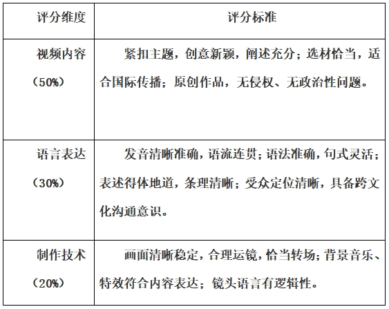 2.视频作品分辨率为1280×720或以上,接受MPG、MPEG、AVI、MOV、WMV、MP4等格式文件。配有英汉双语字幕,时长为4-6分钟。