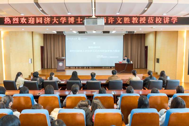 为深入贯彻落实校领导期初工作报告精神,主动适配人工智能时代翻译行业发展新趋势,进一步强化翻译特色专业建设,持续提升专业建设水平与人才培养质量,4月3日,我院特邀同济大学外国语学院博士生导师许文胜教授围绕“AI时代翻译人才培养与专业发展”开展深度座谈与专题讲座。外国语学院党委书记王克志、副院长曹晓晨出席活动,翻译专业全体教师及学生代表一同参与,共话行业变革趋势,共探人才培养新路径。
