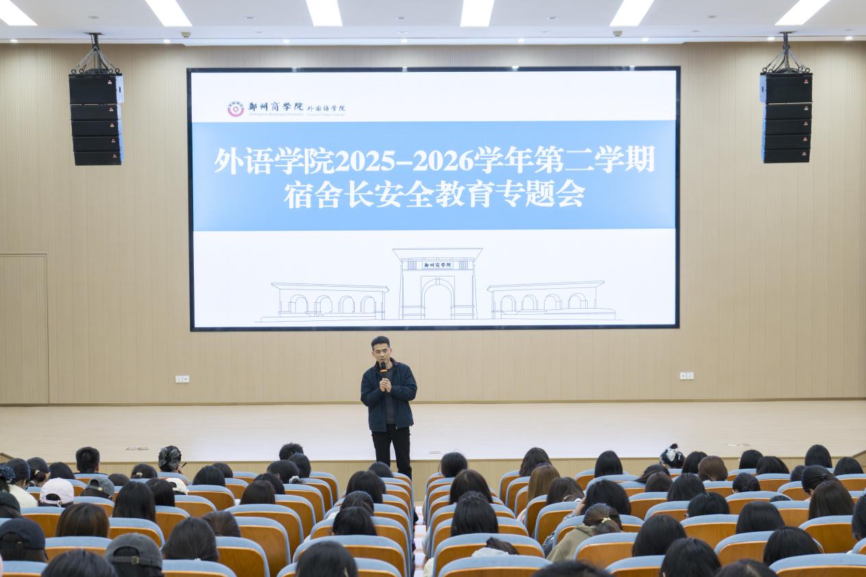 为进一步强化宿舍管理效能,凝聚宿舍育人合力,筑牢校园安全防线,4月1日下午,我院于体育馆负二楼报告厅召开2025-2026学年第二学期宿舍长安全教育专题会。外语学院党委书记王克志、团委书记王子浩、全体辅导员及全院宿舍长参会,共话宿舍安全,共促文明建设。