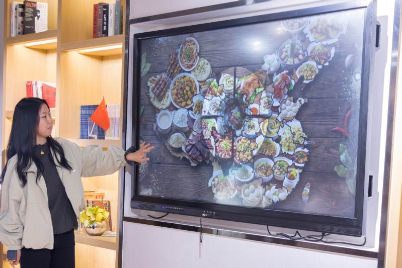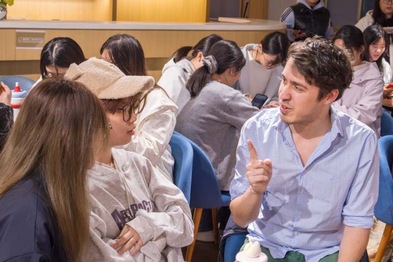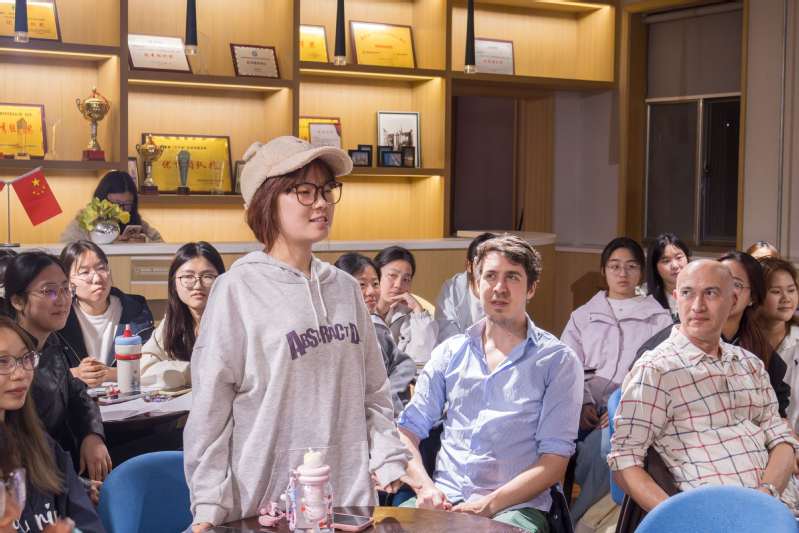 Ayran指出,中国传统美食承载着地域历史、生活智慧与人文精神,体现了人与自然和谐共生的理念,是增强文化认同、传递家国情怀的重要载体。在研讨环节,同学们结合自身生活经验,分享了对中国传统美食文化的理解。有同学指出,传统菜系之间的差异不仅是口味的不同,也反映了各地历史习俗、生活方式与自然环境的关联。从食材选取到烹饪技艺,从饮食礼仪到文化寓意,菜品背后承载着丰富的地方记忆。通过本次活动,同学们对中华饮食文化的内涵有了进一步的认识。外教James和Gaberiele表示,中国传统美食让他们感受到中华文化的深厚底蕴,八大菜系风味各异却又和谐共存,既体现了“和而不同”的东方智慧,也蕴含着人与自然相融的饮食理念。他们认为,美食是跨越语言的文化桥梁,希望未来有更多机会深入了解并向世界介绍中华饮食文化。