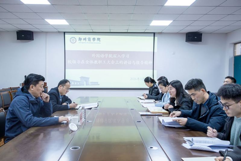 3月13日下午,外国语学院在209会议室深入学习期初全体教职工大会董事长讲话和校领导工作报告精神...