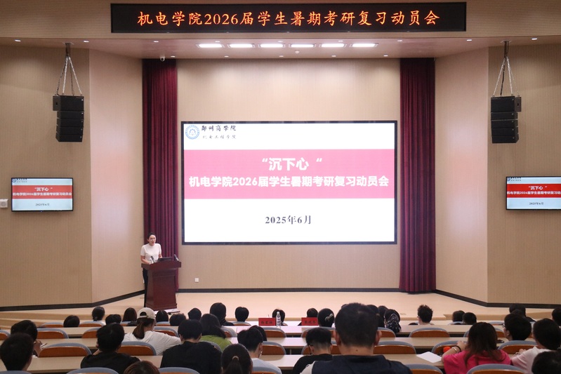 为助力2026届考研学子科学规划暑期复习,强化备考信心,6月26日上午,机电工程学院于躬行楼报告厅召开暑期考研复习动员会。院长张晓冬、党委书记杨茗涵、外语学院孙冰老师出席会议,2026届暑期留校考研学生180余人参会。会议由考研教研室主任张永鑫主持。