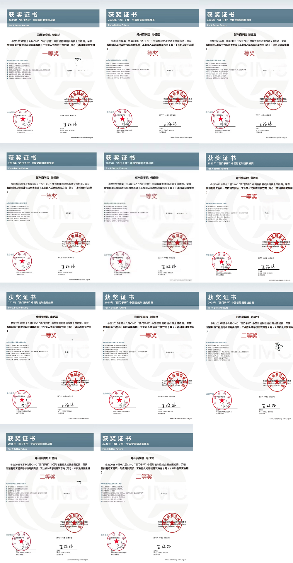 在第十九届西门子杯”CIMC中国智能制造挑战赛的竞赛中,我院学子斩获全国初赛团体一等奖3项,全国初赛团体二等奖1项;其中李皓磊、董浩泽、刘跃跃小组晋级全国复赛。