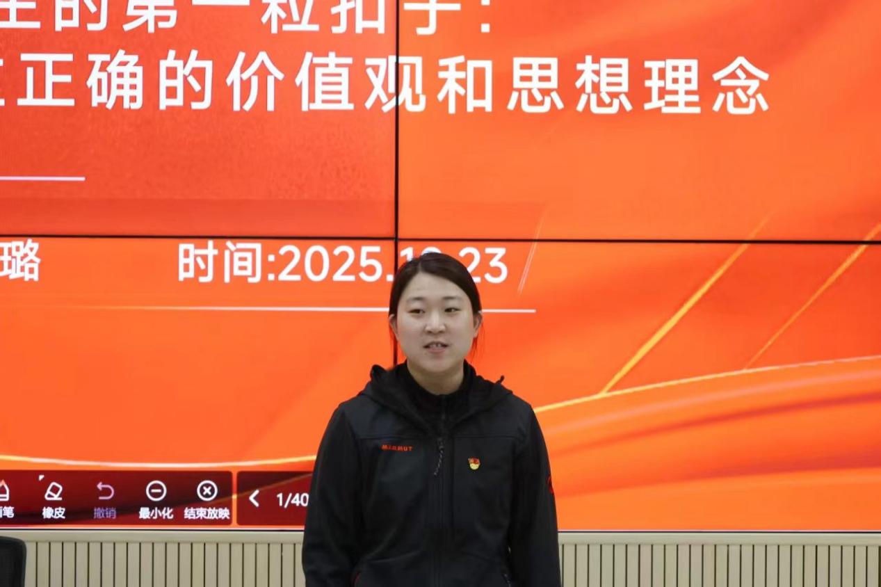 课上,栗璐同志以“第一粒扣子”的来源为开篇,结合新时代青年成长特点与社会发展需求,用历史和现实的案例阐释“第一粒扣子”对人生道路的关键影响。接着,她引导积极分子通过勤学,修德,明辨,笃实的方法路径去树立正确价值观。最后,栗璐同志希望同学们时刻以党员标准要求自己,以此次党课为起点,不仅扣好“第一粒扣子”,更要走好每一步道路,努力成长为德才兼备、可堪大用、能担重任的栋梁之材。