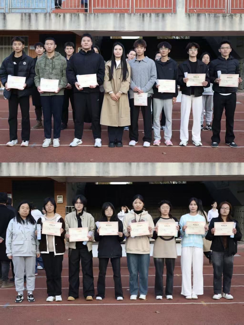 历经全天的热血角逐,机电工程学院第十二届运动会各项赛事圆满收官,运动员们的汗水终在赛场凝结成荣耀勋章。闭幕式颁奖环节庄重启幕,首先由贾西强老师宣读各单项及团体比赛成绩与获奖名单。随后,颁奖嘉宾依次登台:徐红颖老师、苏国丽老师分别为男、女子单项冠军颁发奖项并合影留念;李晓倩老师为获得优秀组织奖的班级颁发奖项并合影留念;最后分别由党委书记杨茗涵、团委书记顾成建和李腾腾老师为获得团体总分一、二、三等奖的班级颁发奖项并合影留念。