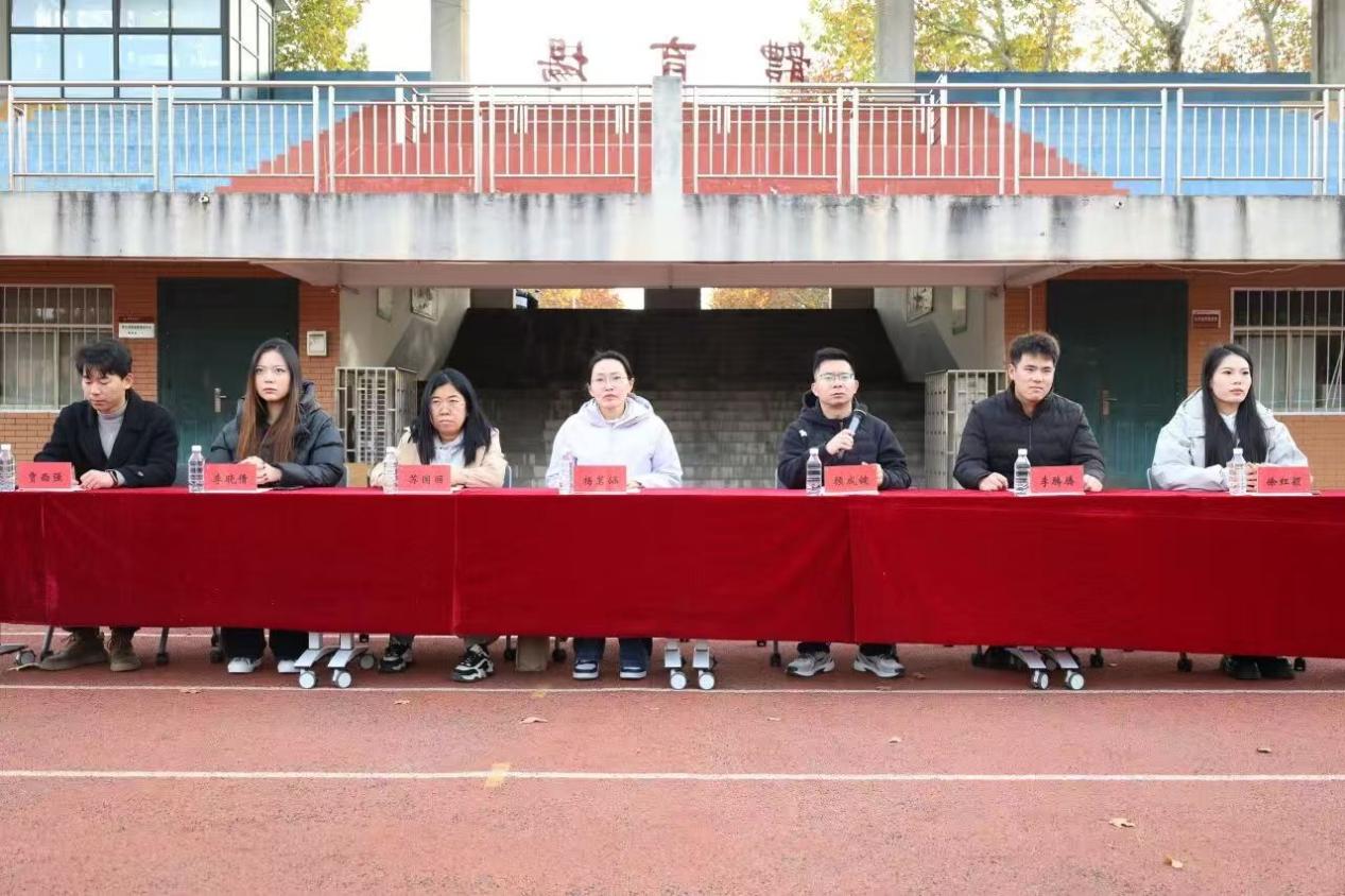 金风送爽,赛场燃情!为深入贯彻落实身体素养提升工程、落实相关会议精神,帮同学们真正实现“享受乐趣、增强体质、健全人格、锤炼意志”的目标,2025年11月9日,机电工程学院第十二届秋季运动会重磅启幕!出席运动会开幕式的领导老师有机电学院党委书记杨茗涵、行政秘书兼团委书记顾成健,新生辅导员苏国丽老师、贾西强老师、李腾腾老师、李晓倩老师、徐红颖老师以及团委学生会工作人员、2025级全体新生。