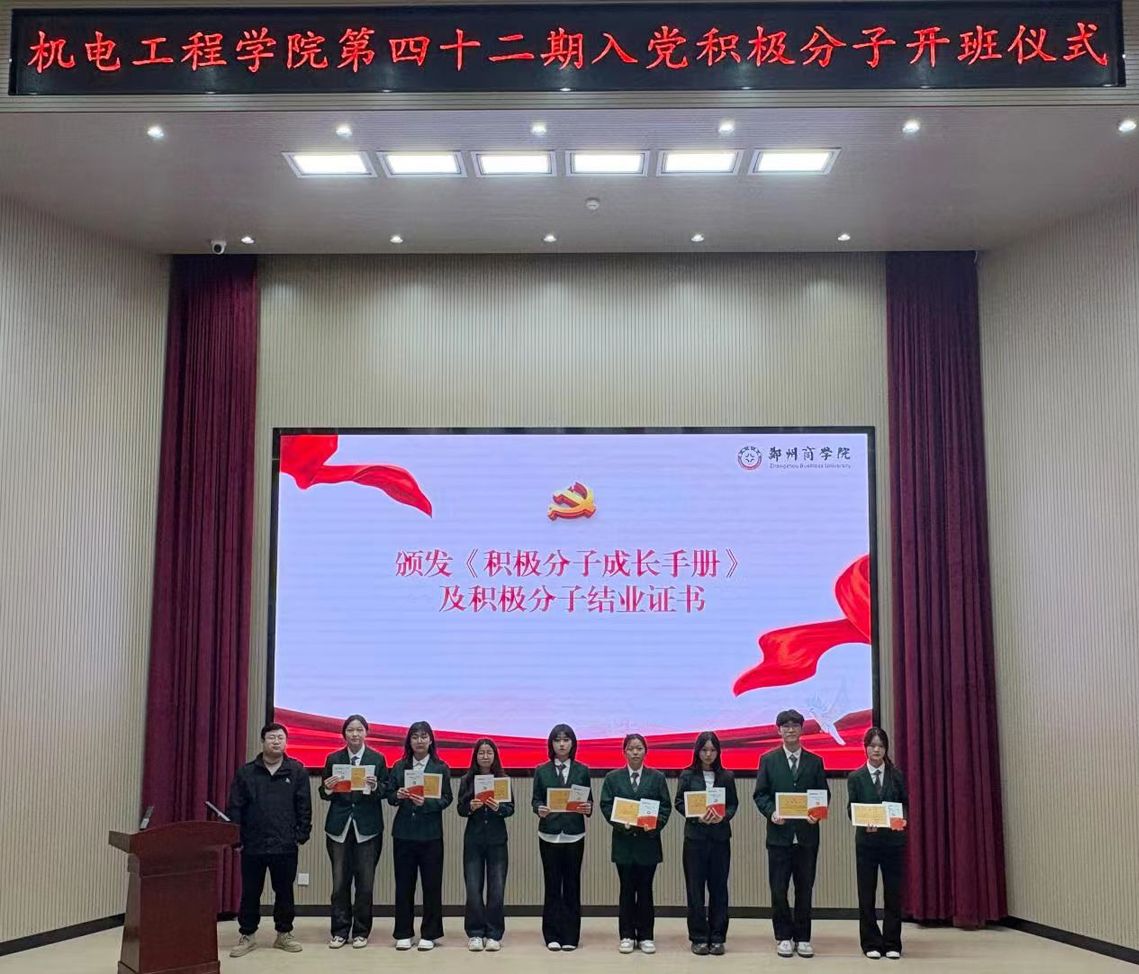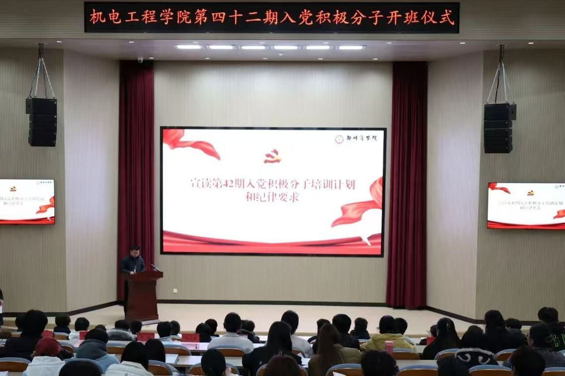 为夯实学院党员发展工作基础,加强入党积极分子的培养教育,严把党员发展“入口关”,切实提高入党积极分子的思想政治素养和理论水平,我院于2026年3月18日晚在躬行楼报告厅举行“机电工程学院第四十二期入党积极分子培训班开班仪式”。机电工程学院党委书记杨茗涵、团委书记顾成健、生党支部书记、全体辅导员及本期入党积极分子培训班全体成员参加本次仪式,会议由学院党委组织委员郑昕同志主持。