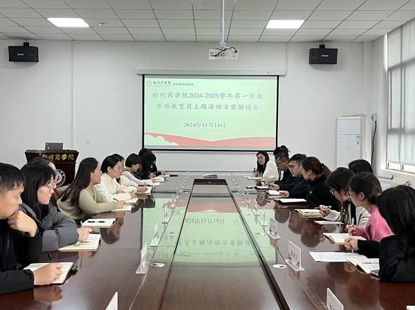 为了进一步推进我校的劳动教育工作有效开展,结合《郑州商学院2024-2025学年第一学期劳动教育月主题活动方案》相关工作要求,11月14日上午,文传学院召开《郑州商学院2024-2025学年第一学期劳动教育月主题活动方案》解读及工作部署会。