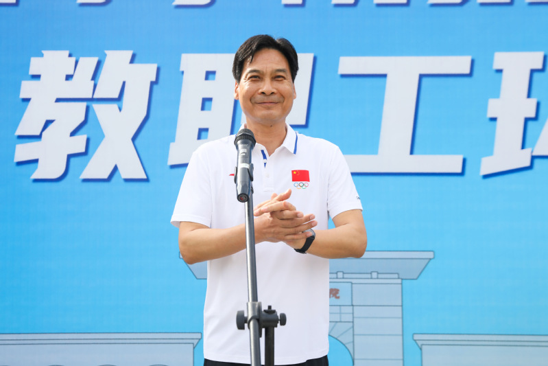 校体委副主任邢坤同志宣读《郑州商学院教职工加强体育锻炼倡议书》,号召全体教职工坚持体育锻炼,培养运动习惯,以运动之光点亮生命,以强健之姿共筑教育华章。