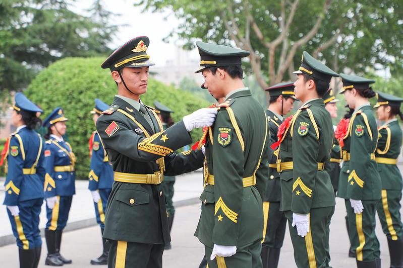 学工部部长路程宣读了《关于对第二十届国旗护卫队的表彰和对第二十一届国旗护卫队成员的任命决定》,对第二十届国旗护卫队的卓越表现予以高度肯定,同时宣布了第二十一届国旗护卫队成员的任命。在热烈的掌声中,第二十一届队员为第二十届队员佩戴光荣花,与会领导为优秀国旗卫士代表颁发荣誉证书、集体照和纪念奖章。第二十届国旗护卫队成绩斐然,众多队员在担任学生干部、获取荣誉奖项和奖学金方面表现突出。