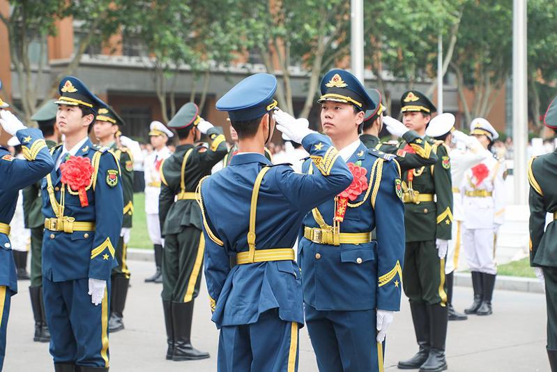 最后,校党委书记吴建军在讲话中对第二十届国旗护卫队圆满完成使命表示祝贺,对第二十一届国旗护卫队寄予厚望,望其传承优良品质,捍卫国旗尊严。校领导结合习近平总书记对青年的寄语,向同学们提出三点希望:心怀“国之大者”,让理想与时代同频共振;脚踏实地,做能吃苦的新时代好青年;勇于追梦圆梦,让理想在实践中开花结果。最后,号召广大郑商学子学习习近平总书记在河南考察时的重要讲话精神,在民族复兴征程上勇担先锋、奉献青春。