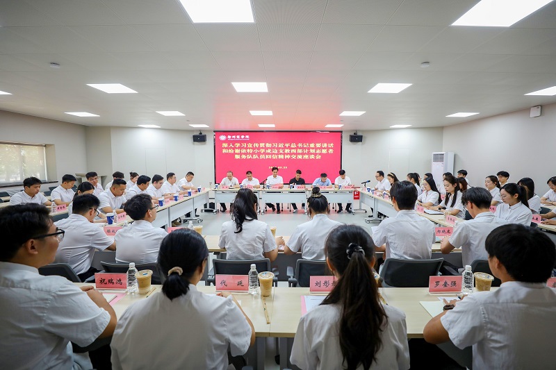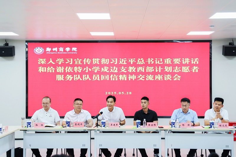 5月28日下午,我校举行深入学习宣传贯彻习近平总书记重要讲话和给谢依特小学戍边支教西部计划志愿者服务队队员回信精神交流座谈会。校党委书记吴建军、董事长助理陈宗纬、党委副书记兼纪委书记裴晓涛、党委组织部部长邢坤、党委宣传部部长程文质、党委学工部部长路程、各学院团委书记、辅导员代表、学生代表等参加会议。会议由校团委书记张鹏主持。