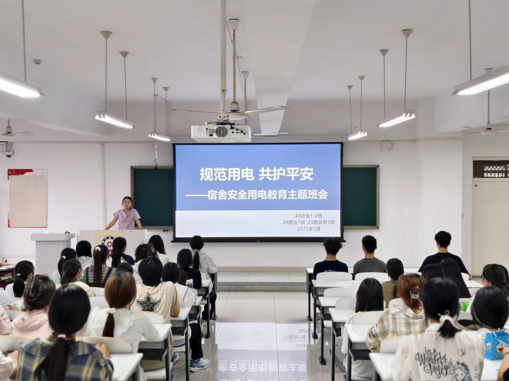 为深入推进“六化一家园”建设,切实增强学生的消防安全意识,筑牢校园消防安全防线,学务处组织各二级学院开展宿舍用电安全主题班会。