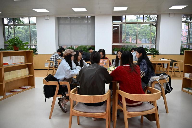 “场馆里的思政课”以分模块教学为核心抓手,充分利用“真理之光”思政主题教育体验中心、图书阅览室和智慧教室等教学资源,构建了“场馆授课—书室研讨—智慧升华”的全链条思政教学路径,通过“场馆讲解+体验互动+实践研讨”的模式,着力打造“启蒙感知、探究梳理、深化论证”的梯度育人链条。这种“馆室联动”的教学模式,以启发式、研讨式、互动式、沉浸式的“四式融合”教学实践,显著提升了思政课教学的针对性与吸引力。