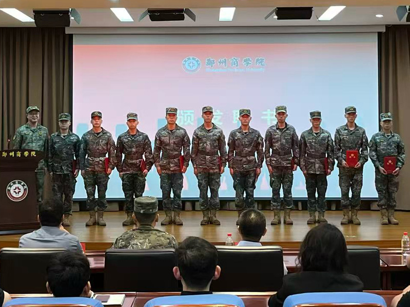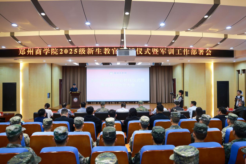 伴随着庄严的国歌声,2025级新生军训教官聘任仪式暨军训工作部署会拉开序幕,在场全体老师、全体教官肃立,奏唱国歌。会上,学务处副处长兼武装部副部长贺萌宣读2025级本专科新生军训安排;学务处处长兼武装部部长路程宣读《郑州商学院关于聘任2025级学生军训教官的决定》,并为2025级学生军训教官颁发聘书;驻豫某部杨教官宣读《2025级学生军训教官军训守则》。