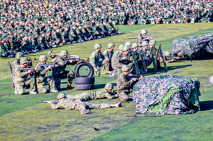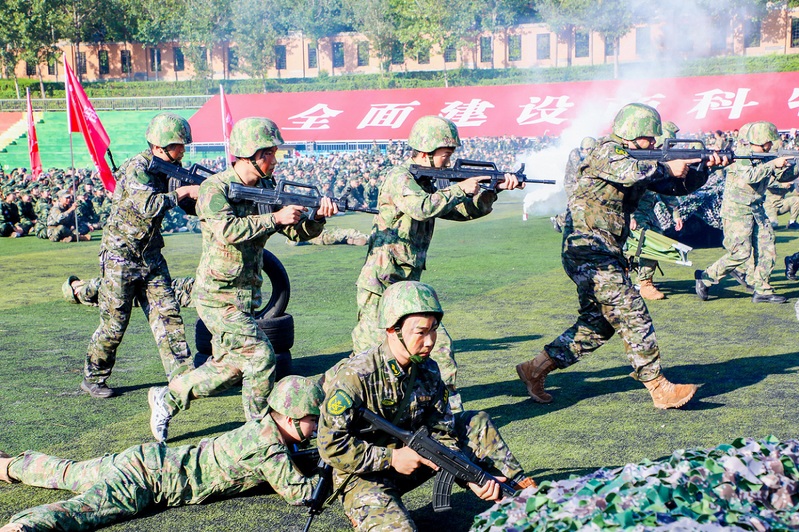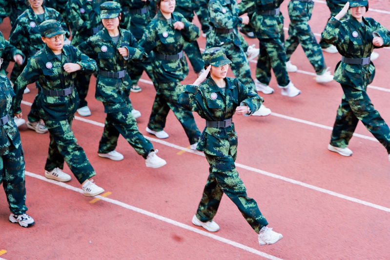 随着《中国人民解放军进行曲》激昂的旋律响起,新生军训汇报表演正式开始。各方阵队伍步伐铿锵、意气风发,依次通过主席台,同学们目光坚毅、口号嘹亮,刚劲有力、气势如虹,展现出郑商学子昂扬向上的精神风貌和“请党放心,强国有我”的青春担当。他们挺拔的军姿、整齐的步伐、自信的气度获得了现场阵阵掌声。
