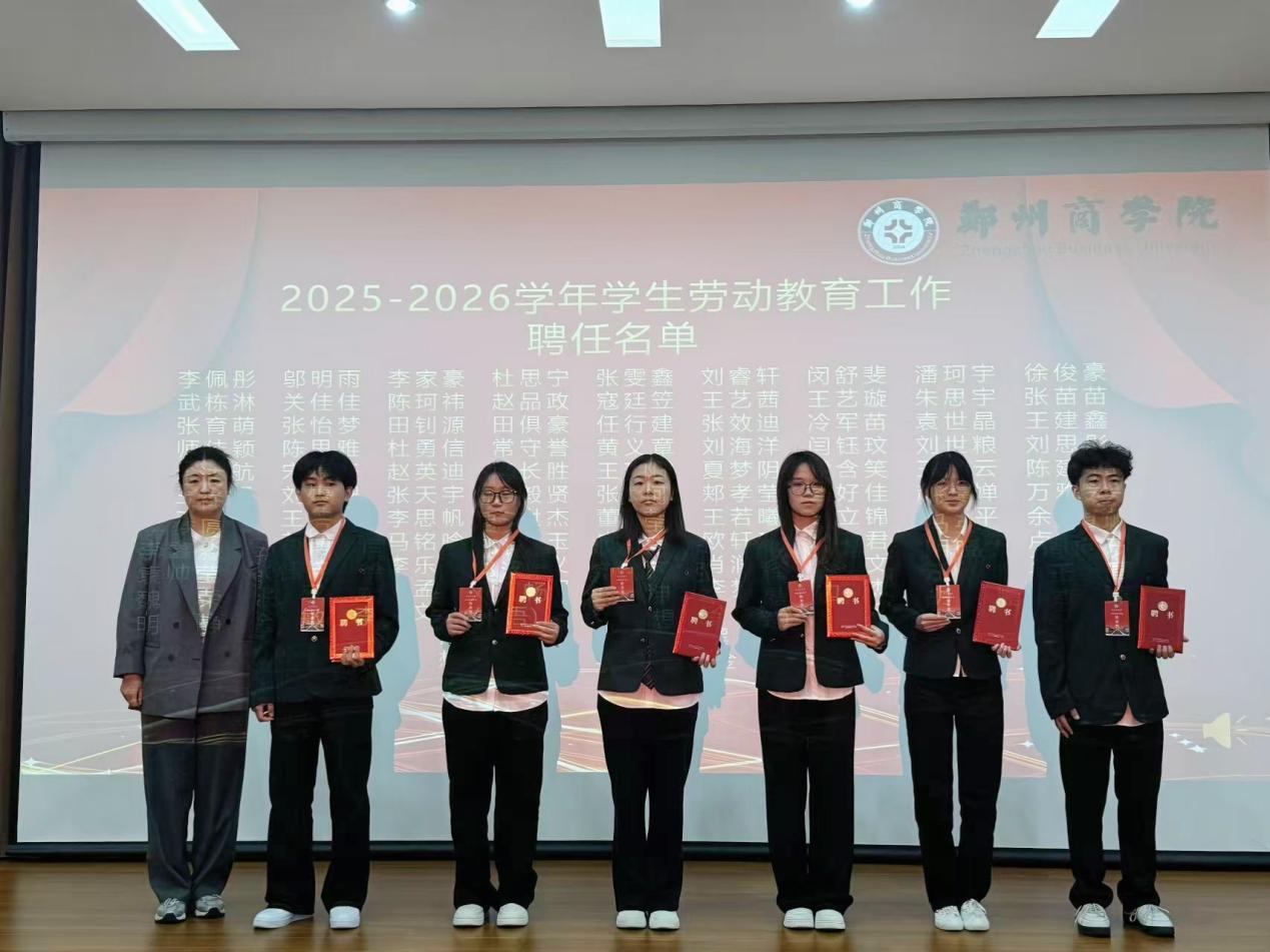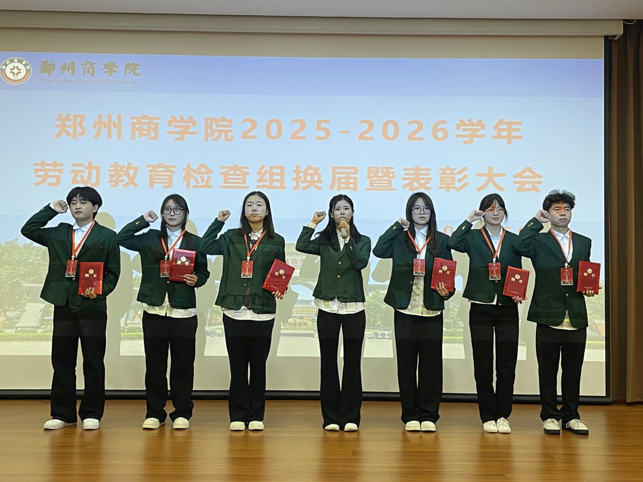 会上,林琳老师宣读《郑州商学院学务处关于表彰上学年、聘任本学年劳动教育工作者的决定》,学生资助管理中心陈梦雪老师为上学年劳动教育先进个人颁发荣誉证书,魏瑶科长为新学年劳动教育检查组成员颁发聘书、并授予工作证,随后,检查组负责人代表李佩彤带领全体劳动教育检查组成员进行宣誓,并完成了劳动教育检查组交接仪式。