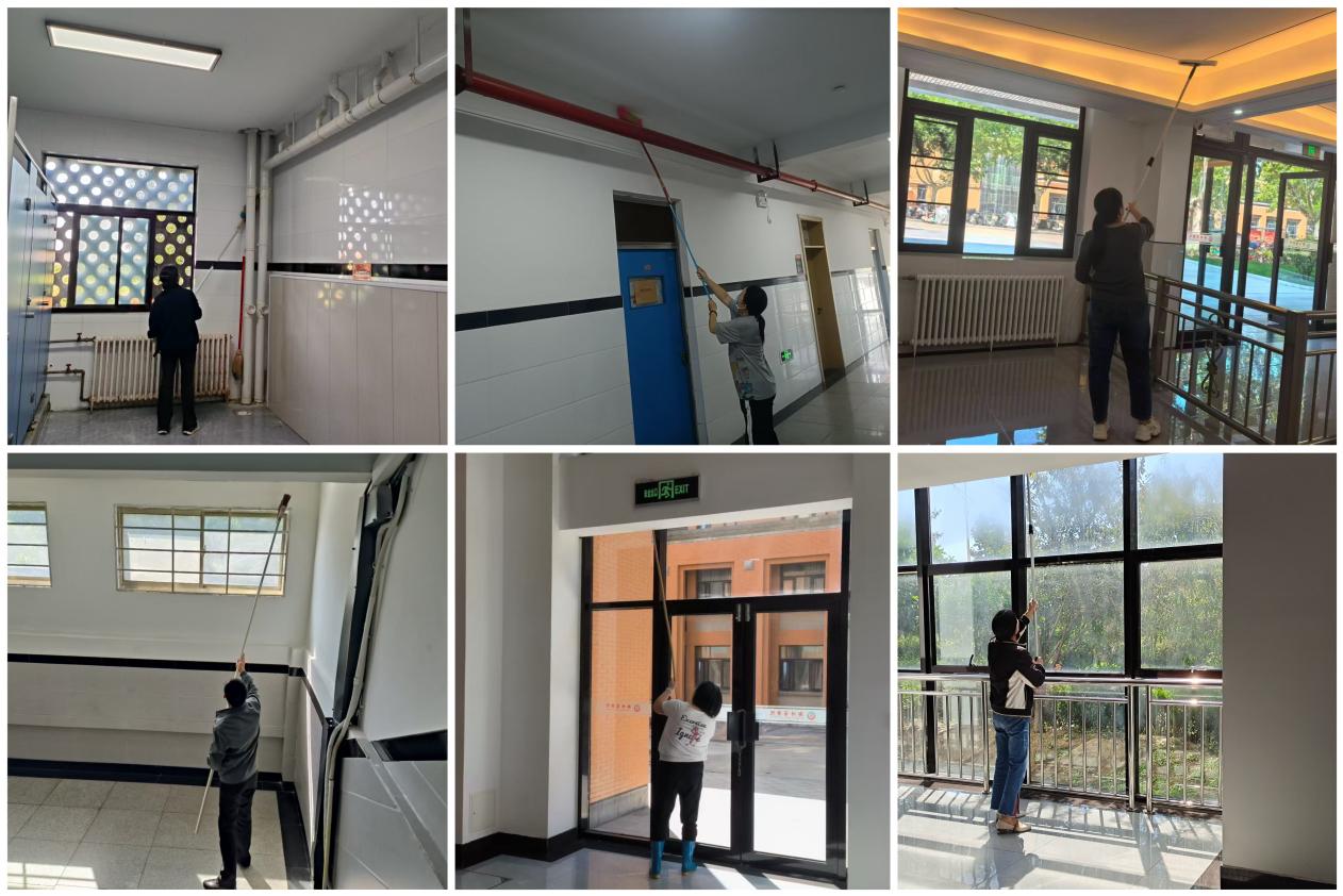 为扎实做好秋季学生宿舍安全卫生工作,切实保障学生宿舍干净整洁。9月25日,学务处宿管科组织宿管员开展宿舍楼“清网”扫除活动。