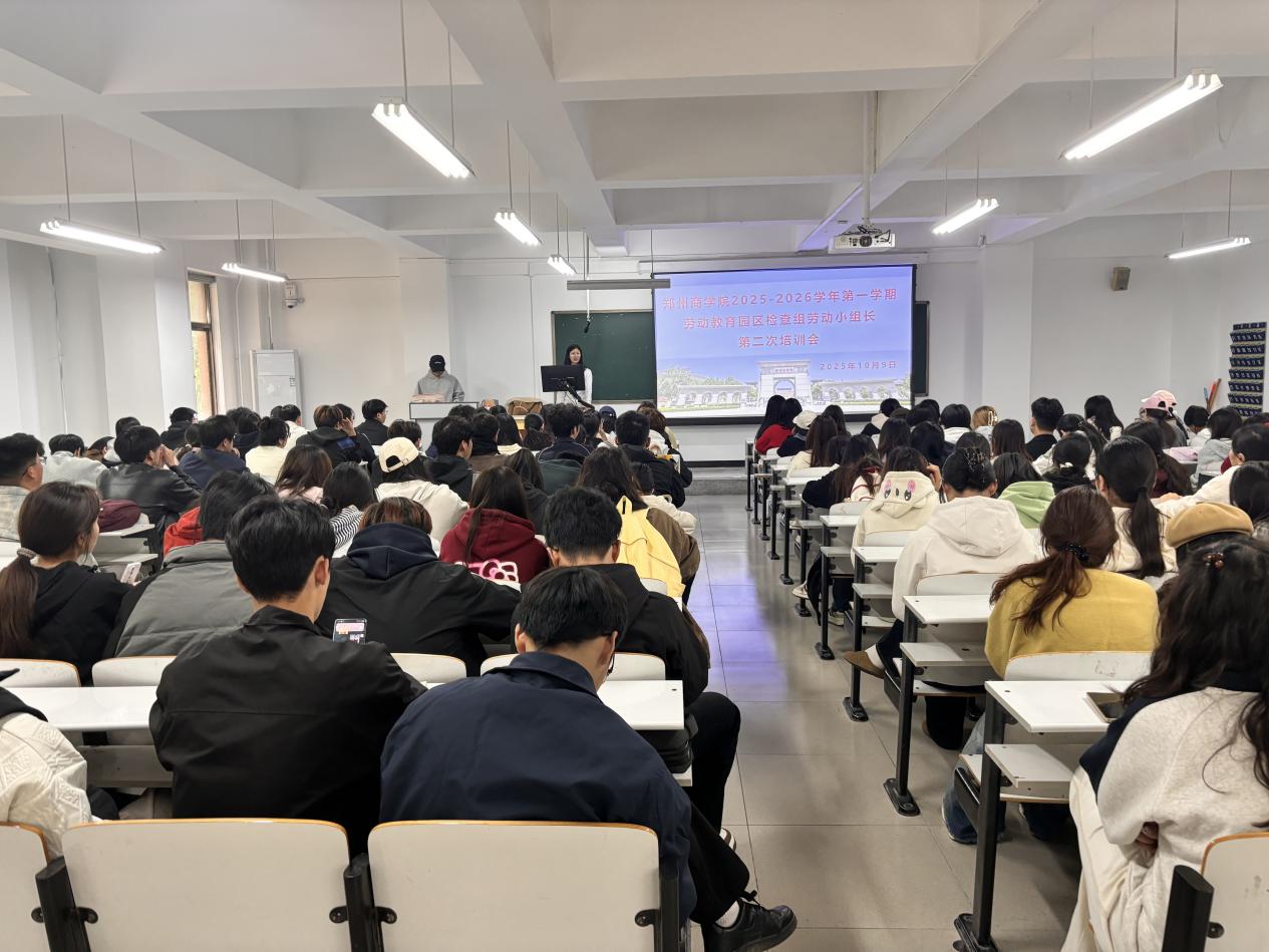 为助力我校新学期教室劳动高效开展,提升劳动委员履职能力,学务处劳卫科于2025年10月14日,在一号楼201组织开展各学院教室劳动委员业务培训,系统学习教室劳动开展流程、卫生标准及考核细则。
