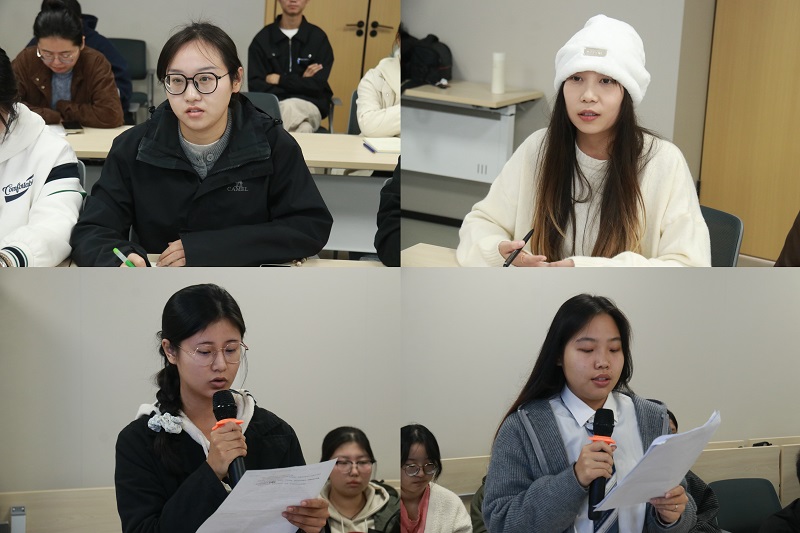 在代表发言环节,机电学院李腾腾老师从新生辅导员的角度分享了组织与引导新生开展劳动教育的心得体会。会计学院张紫妍老师结合个人工作经历,从劳动教育实践出发,讲述如何引导学生参与劳动教育、认可劳动教育的成功经验;学生代表机电学院教室劳动委员赵飞帆、大数据学院园区劳动小组长张毅贤,从班级开展日常劳动教育的方式与方法进行发言,交流分享了参与劳动教育的感悟与思考。