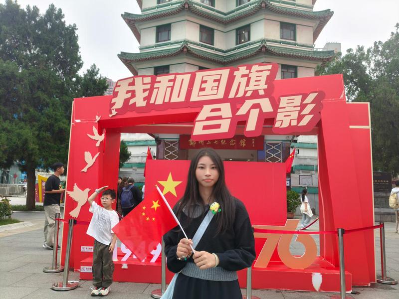 活动倡议发出后,同学们热情高涨,纷纷走向打卡点,以各种富有创意的方式与国旗合影。有的手持小国旗,在国旗下绽放出青春的笑脸;有的以个性化的姿势,表达对祖国的热爱与祝福;还有的到红色场馆记录下与国旗相伴的难忘瞬间。一面面鲜艳的国旗,一张张灿烂的笑脸,共同组成了对祖国最深情的告白。