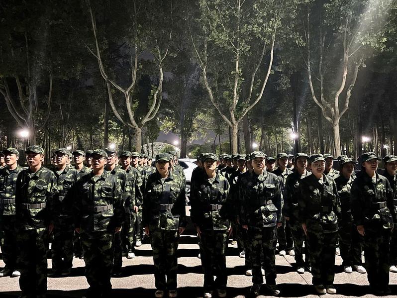 为点燃军训激情、厚植家国情怀,9月24日晚,金贸学院在军训场地开展唱红歌活动。随着《强军战歌》激昂的前奏划破夜空,身着迷彩服的学子们身姿挺拔、眼神坚毅,整齐划一的歌声铿锵有力、穿透夜色。“听吧新征程号角吹响,强军目标召唤在前方”的激昂歌词,既唱出了军人的铁血担当,更展现了金贸学子昂扬向上、奋勇争先的青春风貌。