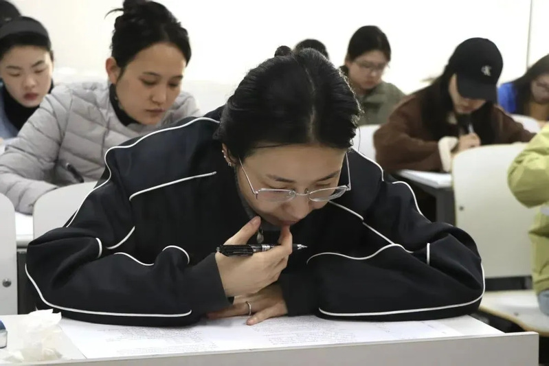 本次测试以闭卷答题方式进行,内容涵盖政治理论知识、思想政治工作相关政策文件及辅导员业务知识等核心内容,题型包括单选题、不定项选择题、简答题、对策分析题和学情分析题。考场上,参赛辅导员们全神贯注、认真作答,以严谨专业的态度充分展现了我校辅导员队伍良好的职业素质、纪律观念和扎实的理论功底。