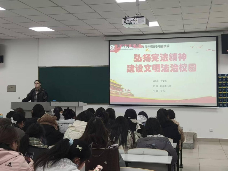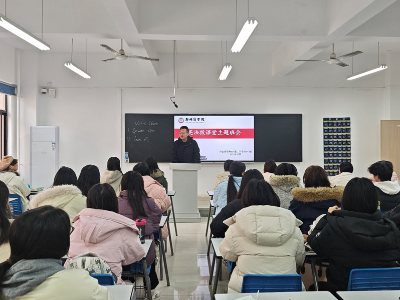 艺术学院、智能建造学院、体育学院等学院开展宪法专题普法主题班会,通过视频学习、案例分析等形式,带领学生学习宪法基本条款,解读与青少年息息相关的法律条文。师生结合生活实例分享法治感悟,在交流探讨中提升了对法律的认知与理解。