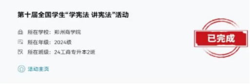 我校广泛动员学生参与普法网“宪法卫士”行动计划,通过线上课程学习、知识测试等形式,推动宪法学习走深走实。学校严格落实“100% 学生完成学习”要求,以线上学习测评推动宪法学习走深走实。
