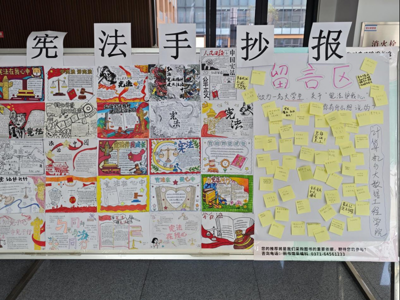 金贸学院、大数据学院、文传学院组织开展“学宪法 讲宪法”手抄报创作活动。通过亲手设计、绘制手抄报,学生需主动查阅宪法知识、梳理核心要点、构思呈现形式,在沉浸式创作中深化对宪法精神、公民权利义务等内容的理解,切实将法治学习从“被动接受”转化为“主动探索”,有效提升学习的趣味性与实效性。