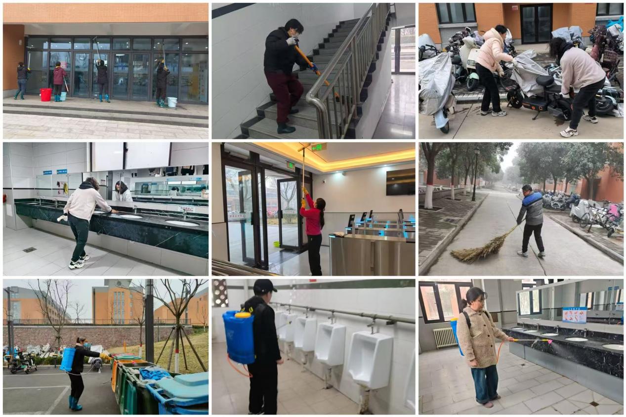 会议结束后,全体宿管老师开展了宿舍楼的卫生大清扫行动。大家分工明确、配合有序,对走廊、楼梯、洗漱间、卫生间等公共区域进行了全方位的清洁。同时,对各楼宇进行全面通风消杀,确保空气流通、环境洁净。经过集中清扫,各宿舍楼环境焕然一新,欢迎郑商学子们返校回家。