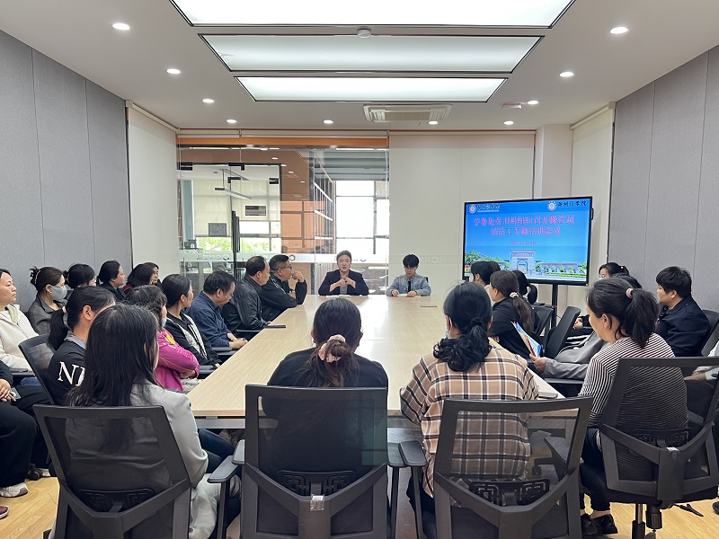 为提升教学楼服务管理质量,营造安全舒适卫生的校园环境,学务处劳卫科于2026年4月15日在学生事务中心二楼会议室组织召开楼管员、清洁工专题培训会议,会议对上一阶段表现优异的楼宇和个人进行表彰,安排部署近期重点工作。