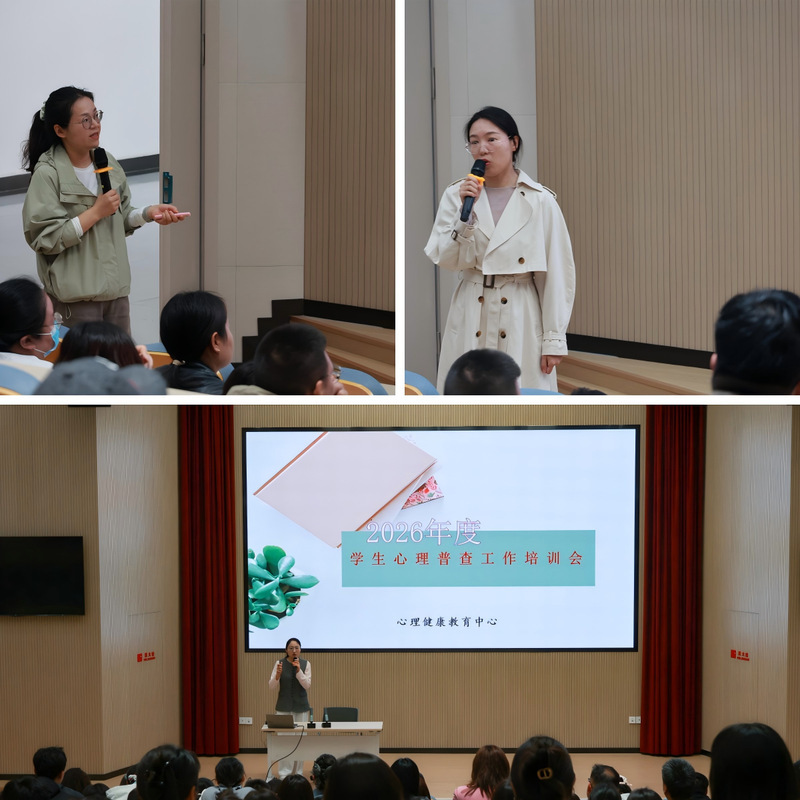 为进一步加强学生心理健康教育工作,全面掌握学生心理健康状况,提升心理危机预防与干预能力,4月16日上午,心理健康教育中心在敏行楼报告厅组织召开了2026年度学生心理普查工作培训会。本次培训会由心理健康教育中心贠芸老师和黄静静老师共同主讲,大一至大三辅导员参加。