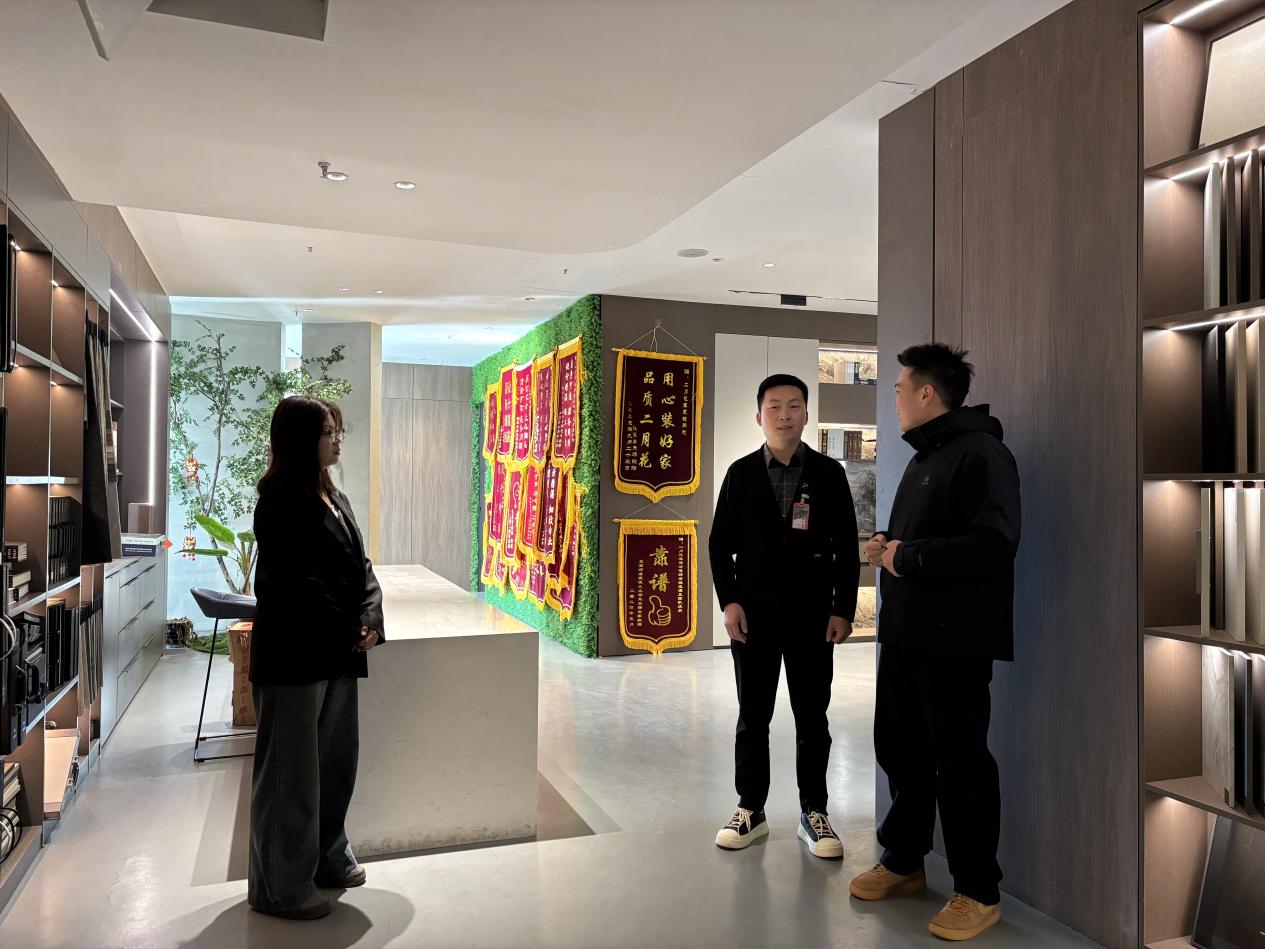 参观结束后,师生们迎来了与二月花装饰公司苏总面对面交流的宝贵时刻。苏总以自身丰富的行业经验为切入点,分享了公司从创立之初到如今在市场中站稳脚跟的发展历程,分析了当下家装行业的市场趋势和挑战,如环保材料的广泛应用、个性化设计需求的增长等。在互动环节,学生们踊跃提问,问题涵盖了从在校学习如何平衡理论与实践、环境设计专业的就业方向,到行业未来创新发展方向等多个层面。苏总逐一耐心解答,鼓励学生们在大学期间要扎实学好专业基础课程,注重培养自身的审美能力和创新思维,积极参与实践项目,提升解决实际问题的能力,为未来投身行业做好充分准备。