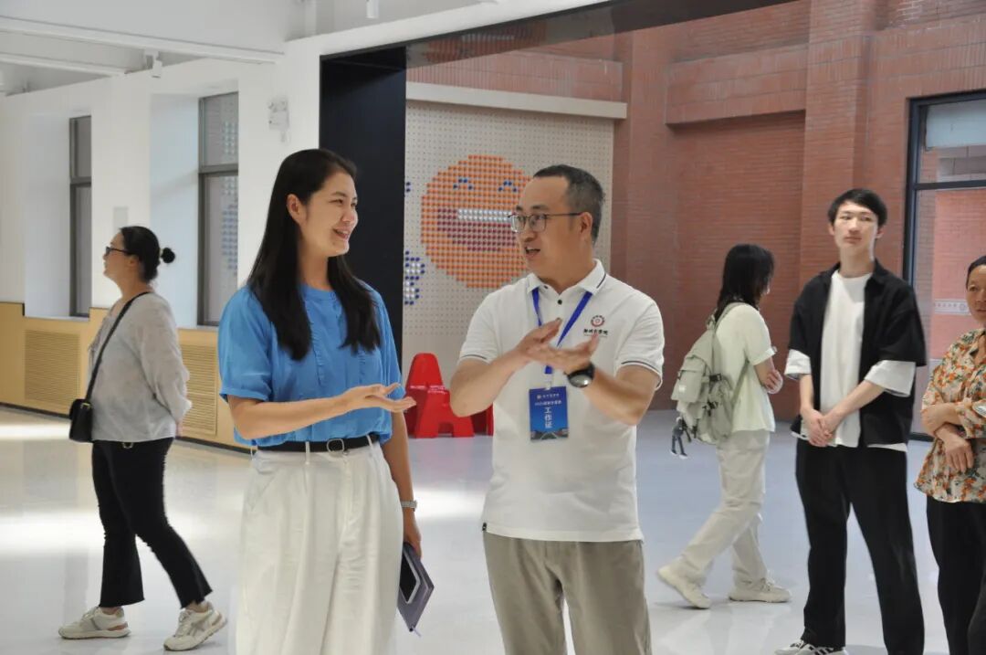 为了让家长们更直观地感受孩子的学习生活环境,牛院长组织家长们参观了艺术实验中心,为家长们详细讲解了学院专业工作室和毕设优秀作品,让家长们切实感受到了学校浓厚的学术氛围和学生们的专业素养。