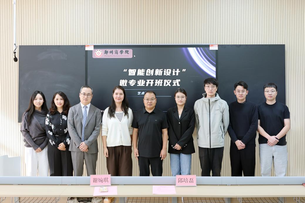 2025年9月24日下午,艺术学院“智能创新设计”微专业开班仪式在艺术大楼103教室隆重举行。教务长邱培磊、计算机与大数据工程学院教师谢婉琪、艺术学院院长牛琳琳、党委书记李帅、副院长张斌出席仪式,与微专业任课教师及首批学员共同见证了这一创新型人才培养项目的正式启动。