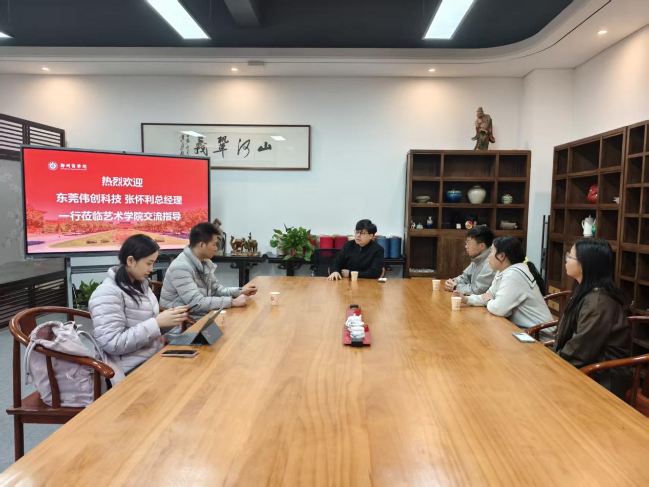 2025年10月11日上午,东莞伟创科技总经理张怀利一行莅临郑州商学院艺术学院产品专业进行实地考察与校企合作交流。艺术学院院长牛琳琳、党委书记李帅、产品专业主任张振中等相关负责人接待并陪同参观座谈。